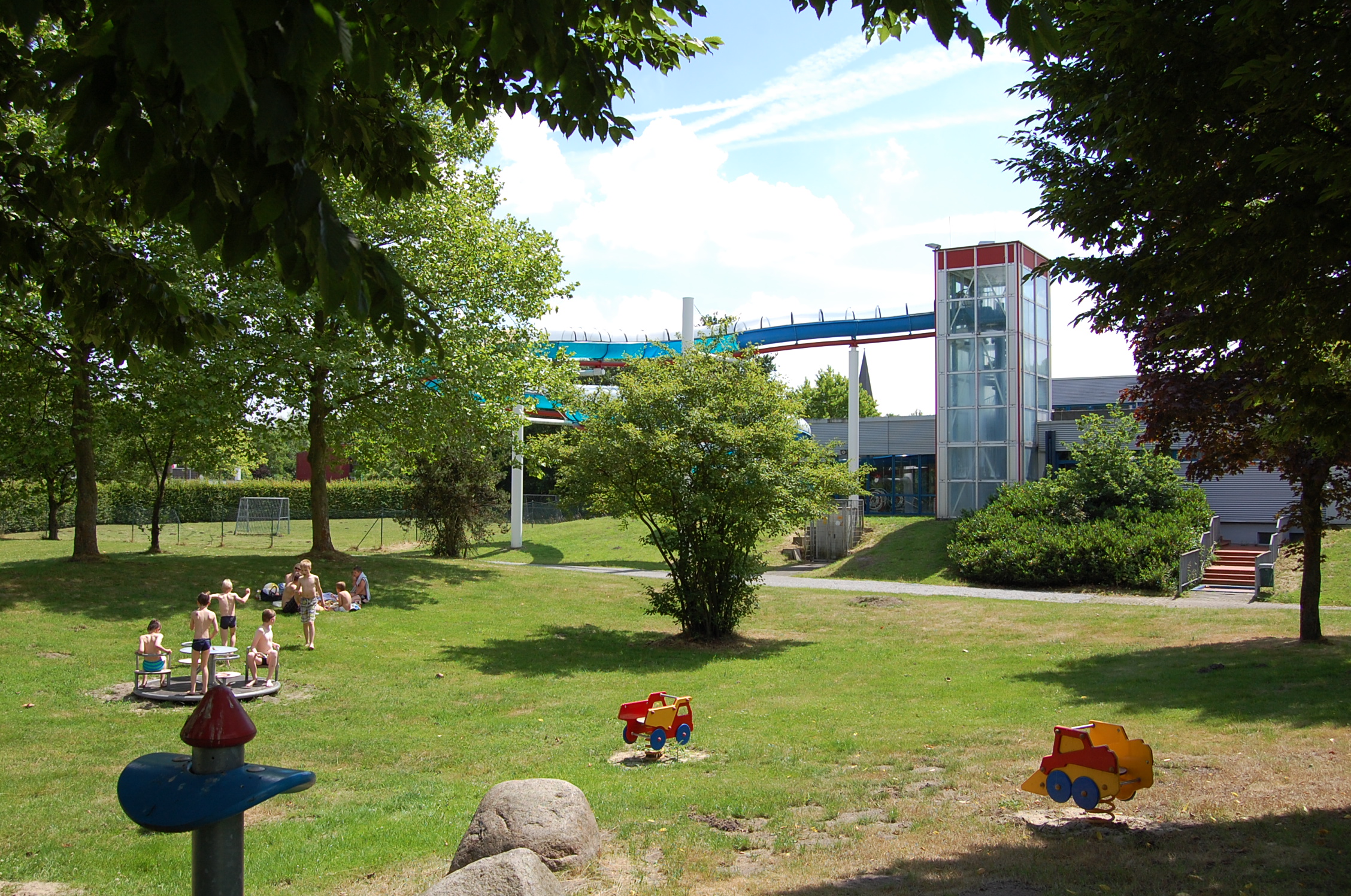 Verkehrstechnisch günstig am Schulzentrum gelegen bietet das Hallenbad Herzebrock mit rund 60.000 Besuchern jährlich Freizeitsport für Jedermann. Das 25 x 10 Meter-Becken mit 1 Meter-Sprungbrett und 3 Meter-Sprungturm, Sprungblöcken wird auf 27° C geheizt, um optimalen Schwimmsport zu ermöglichen. Daneben bietet das Lehrschwimmbecken mit 30° C Wassertemperatur und Massagedüsen die perfekte Grundlage um erste Erfahrungen im Wasser zu sammeln. Während der Sommersaison steht unseren Badegästen die großzügige Liegewiese zum Entspannen mit der ganzen Familie zur Verfügung. Unsere Schwimm-, Fitness- und Bewegungskurse haben positive Effekte auf Ihre Ausdauer und Kraft. Wohlige Wärme erwartet Sie in unserer Infrarotkabine, die während der gesamten Öffnungszeit des Bades zur Verfügung steht. Die 83 Meter-Rutsche bietet Rutschvergnügen für die ganze Familie. Geburtstagskinder haben bei uns an ihrem Ehrentag freien Eintritt!